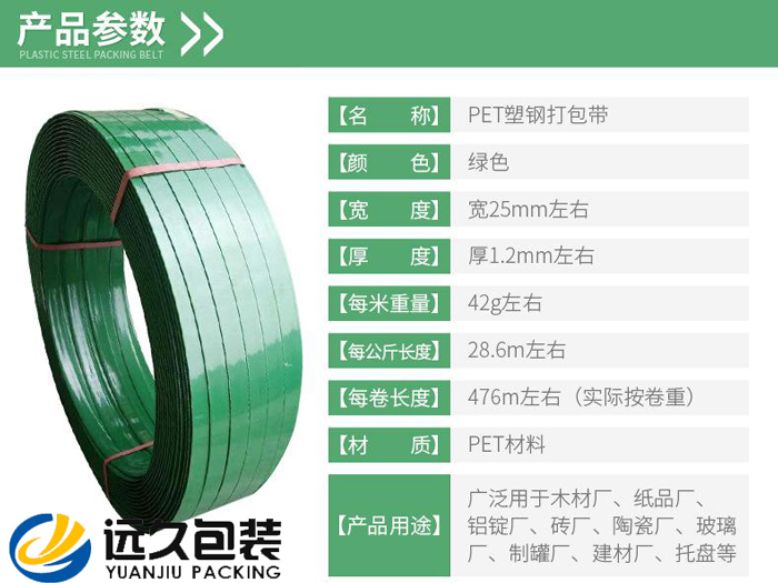 (5)經濟效益佳,PET塑鋼打包帶是工業包裝新型環保包裝輔料,性價比介于PP帶和鋼帶之間,性能更趨向于打包剛帶,而單位成本卻僅僅是鋼帶的六分之一。