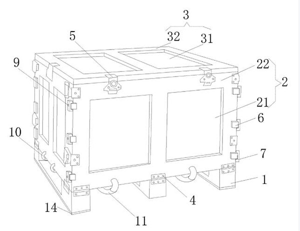 4、通過蝴蝶扣連接的方式可將該箱體進行快速拆裝,開啟工具依賴性低,提高了使用效率,同時扣件成本低廉,易于更換,可重復使用,綜合成本較低,滿足包裝件各種運輸包裝要求,可靠性高。