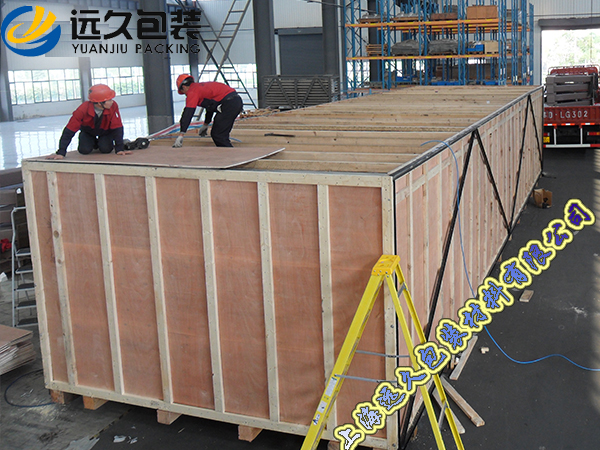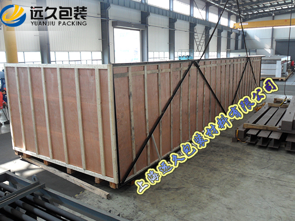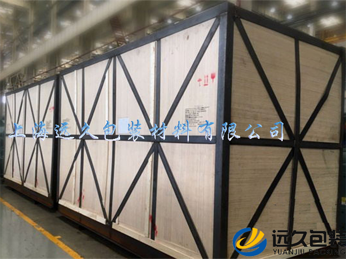 當出口運輸的機械設備長、寬、高超均過2000mm,或重量達到6000kg以上時,我們的木箱設計師在設計木箱結構時,就需要加上鋼結構來增加強度,這種類型的木箱我們就稱之為鋼結構框架木箱,其使用的鋼結構大小也根據木箱所裝載的設備重量和形狀來決定,鋼結構框架木箱理論上內裝物最大重量可達到20000kg以內。