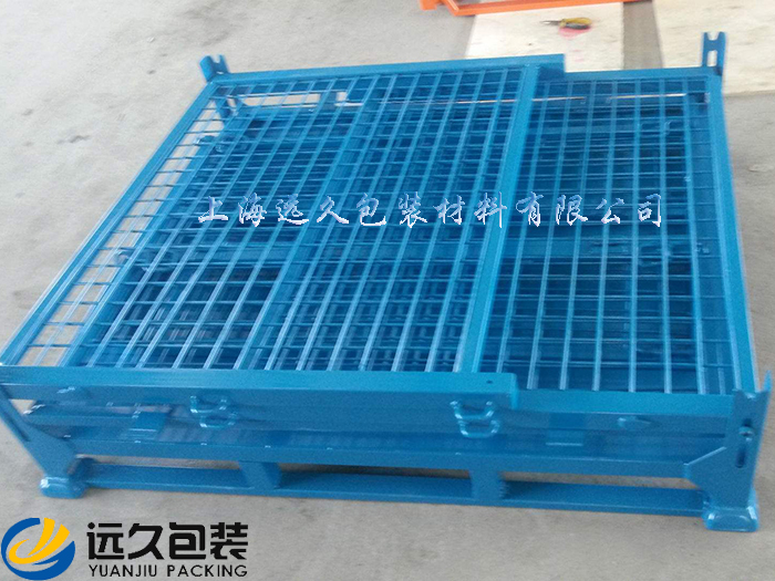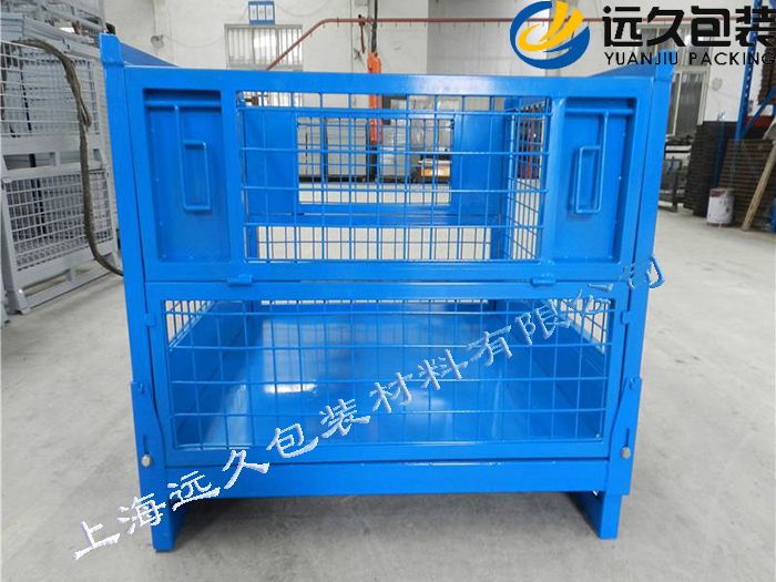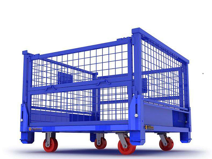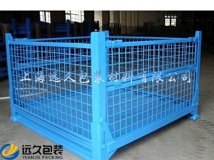 在工廠內使用的各種倉儲物流周轉器具中,有一款和可折疊網格式鐵箱非常相像的金屬材料籠箱物流器具,金屬材料籠箱又稱蝴蝶籠或倉儲籠、美固籠,倉儲籠四周由冷拔絲焊接而成,底部由專用的U型槽鋼焊接組成,用彈簧把四周網片及底架組成的特殊形式可裝貨的物流容器。
