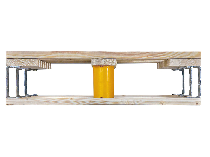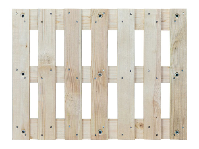 歐標系列 7號 半托盤規格為:800* 600* 163㎜, 重量大約 9.5 kg ,安全工作荷載500 kg ,堆垛時最大疊加荷載為2000 kg,優質松木板材數量13塊,  釘子數量42顆, 腳塊數量3個,6個堅硬的3mm鋼制角支架 ,管狀柳釘數量21個。