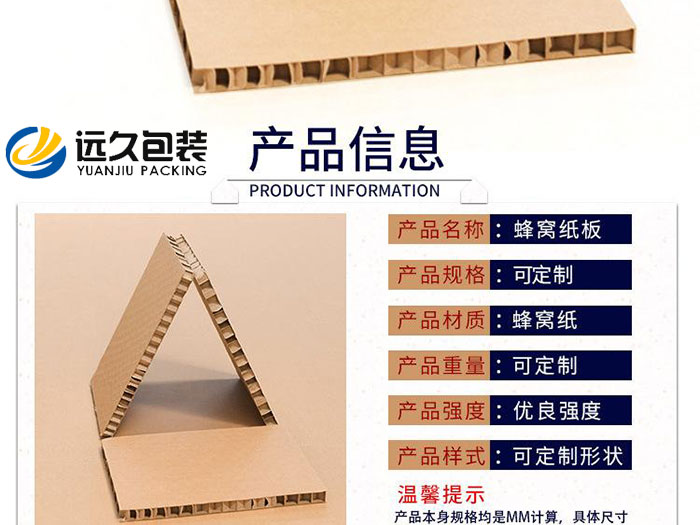 4.蜂窩紙板易于切削、鉆孔,可以加工成各種所需的形狀和尺寸。同時,它與其它結構材料有很好的相容性,適合用作緩沖襯墊。